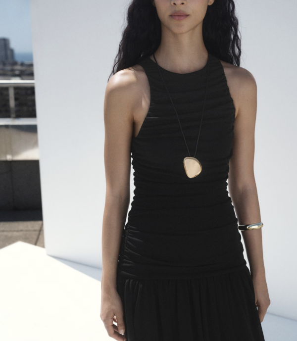 Architectural jewellery is also an easy way of introducing a Third Article into your outfit. This organic shape threaded on a cord is great value and also available in silver. Think how easily it would change something as simple as jeans and a white tee to an intentional look.
