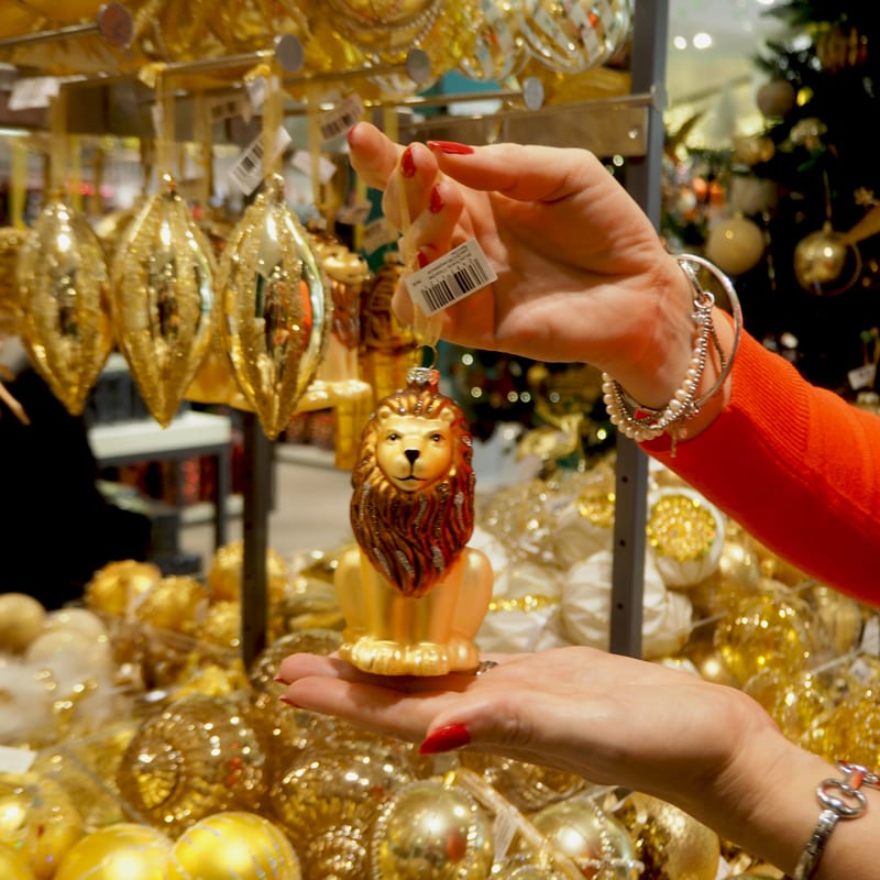 Shopping for decorations can be, quite literally, a headache as you find yourself besieged by a bazaar of flashing, glittering colour. So often I find myself abandoning a basket full of mismatching baubles because I’ve bounced from one display to another, picking things up randomly along the way. Not at John Lewis & Partners though – they’ve planned a careful customer journey so that you can navigate easily through the schemes, identifying your favourite within minutes. They’ve majored on colour-led themes this year: emerald, ruby, amber, gold, jet, sapphire and moonstone. Each one is visually dramatic, I can’t show you them all or we’d be here all day but have a wander round with me while I show you what caught my eye.