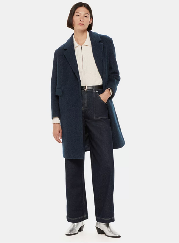 I’m going to begin with the best thing you can buy in the sales and that’s coats. 100% wool coats are now difficult to find, especially at an affordable price. Now that classic coats have replaced lockdown’s long quilted puffer in the trend stakes there aren’t as many bargains to be found as there were even a year ago but here’s a great one in a cut that’s just slightly looser than a city coat which makes it more versatile. It’s also a lovely light navy so it will work better with jeans than a dark navy number. It’s 100% wool and reduced to clear.
