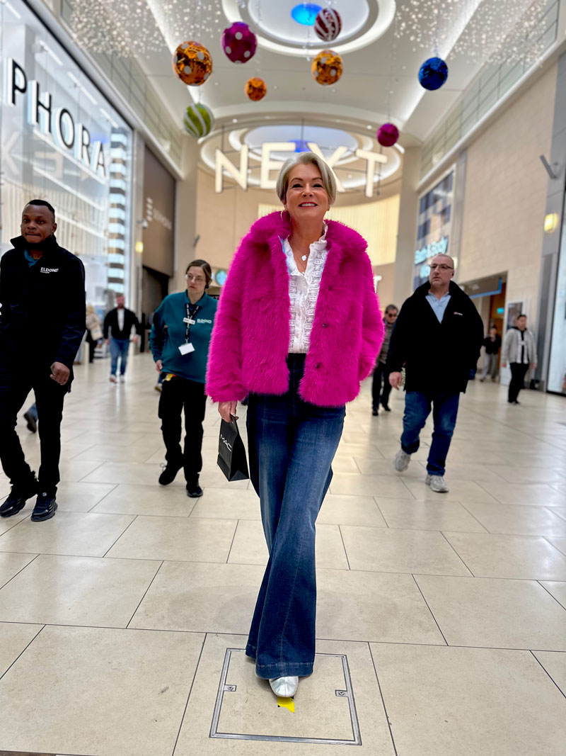 The plum coloured glossy, faux leather car coat with 40% off – such a great way to funk up a simple midlife outfit.