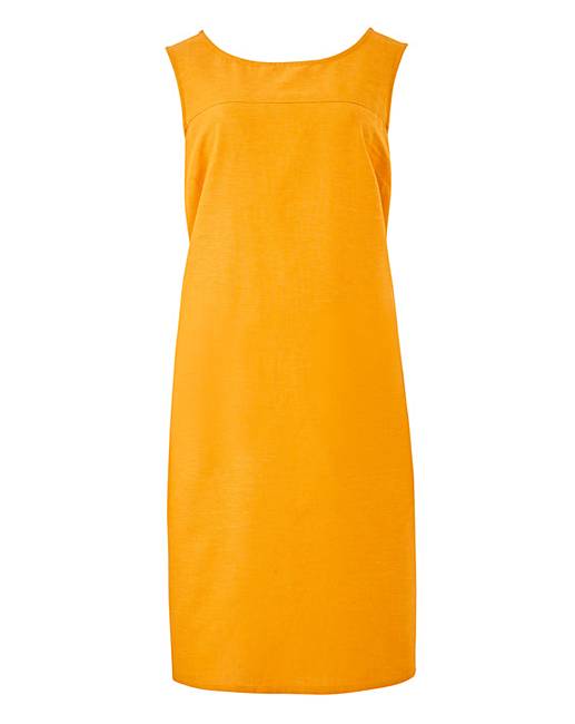 Here’s another linen blend dress in orange, this time with added detail at the neckline.