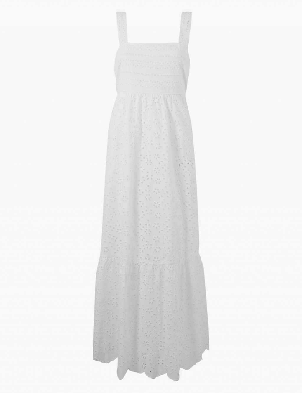 White midi-dress – this is new in, a lovely cotton broderie anglaise midi that’s getting good reviews