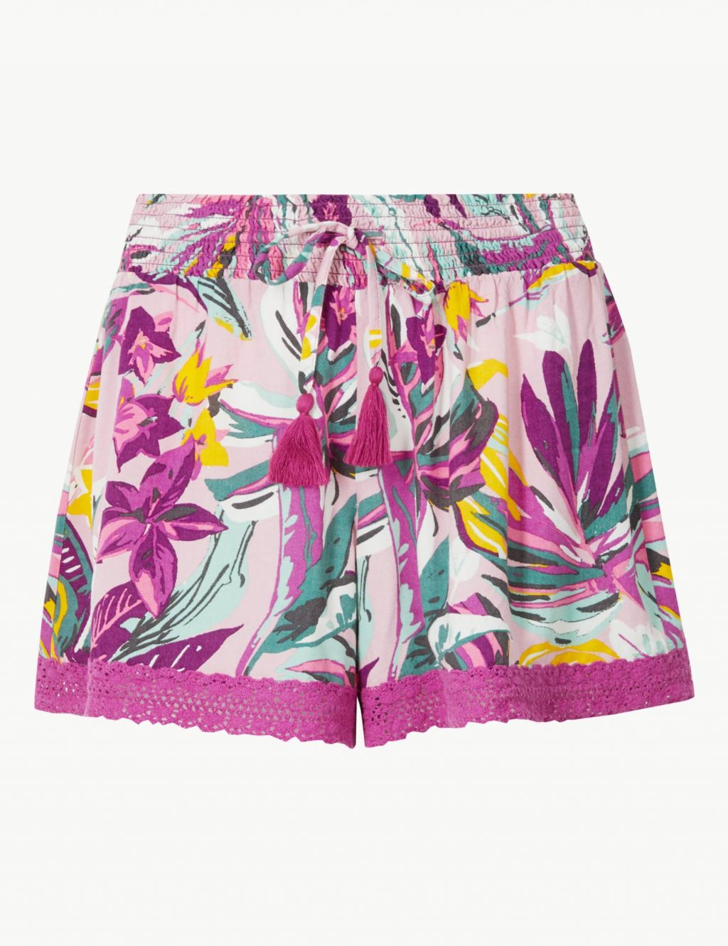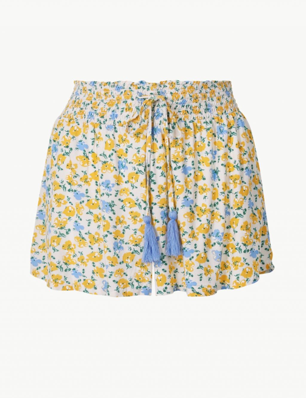 Striped pyjama shorts (limited stock online); Magenta floral pyjama shorts; Yellow floral pyjama shorts (NB the shirred waist on these last two pairs is particularly flattering to the midriff)
