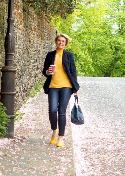 Block heels are great for anyone who rushes around or has to negotiate cobbled streets. Yellow is one of the season’s key colours and shoes are an easy way to dip your toe in the water (did it again). I bought some on a whim last spring and found myself wearing them far more than I expected.